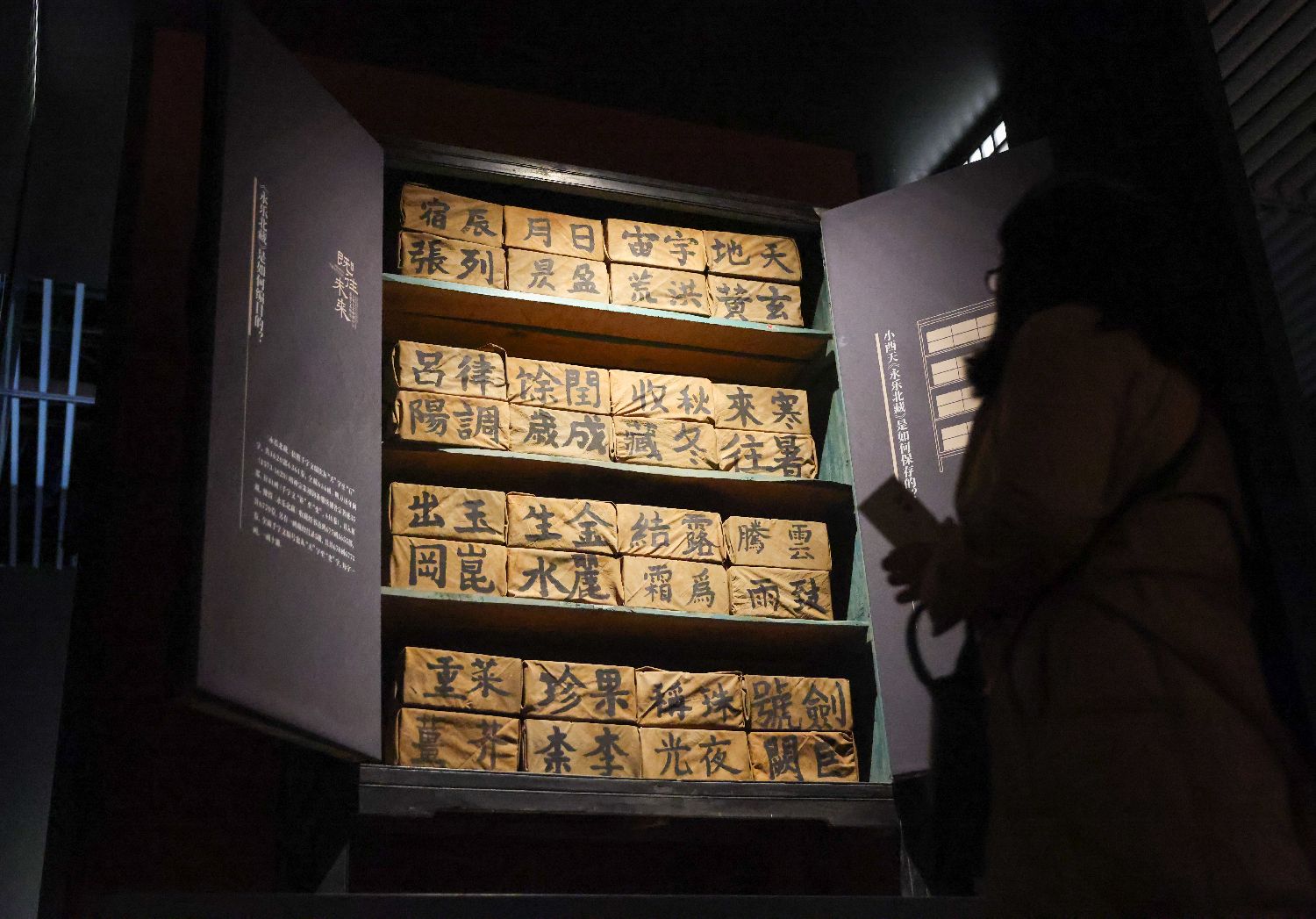 12月18日,“既往未来——小西天文物撷珍与悬塑艺术特展”在位于北京的国家典籍博物馆面向公众开放。展览共汇集50组84件文物,包括寺藏重要碑刻、明清金铜造像精品、《永乐北藏》珍本、悬塑文物残件等。小西天位于山西省隰县,原名千佛庵,因其保存的1978尊明代塑像而闻名。图为观众参观用于存放经书的黑漆经橱。图片来源:中新社