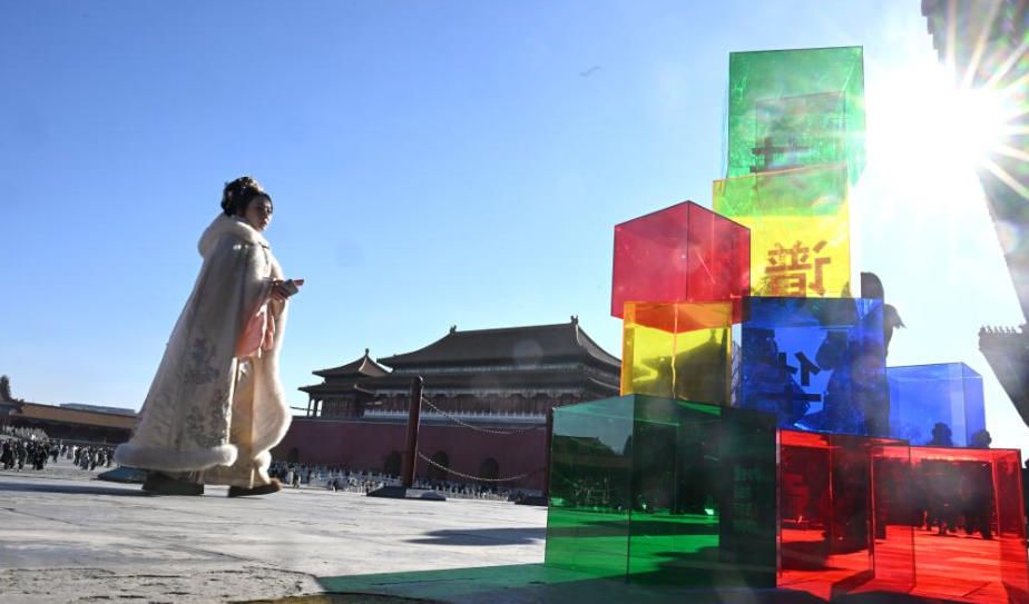 12月30日,观众参观“来!听色彩讲故事”故宫教育体验展。12月30日,“来!听色彩讲故事”教育体验展在北京故宫博物院开幕。展览以“三原色”体系为科学和美学支点,衍生出“彩、红、黄、蓝、绿、白”六个主题单元,将故宫的平安守护、匠心传承、交流互鉴与可持续发展理念,转化为可感知、可互动、可探索的沉浸式体验。图片来源:新华网