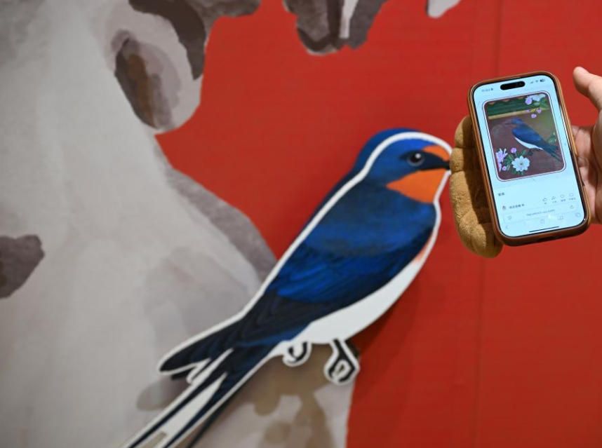 12月30日,观众在“来!听色彩讲故事”故宫教育体验展上用手机参与互动。图片来源:新华网