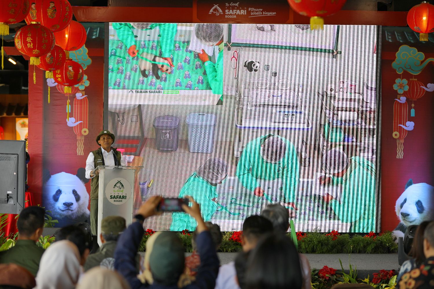 当地时间1月6日,印度尼西亚西爪哇省茂物野生动物园举行“新出生大熊猫幼仔媒体发布会”,中国驻印尼大使王鲁彤(右一)出席。图片来源:中新社