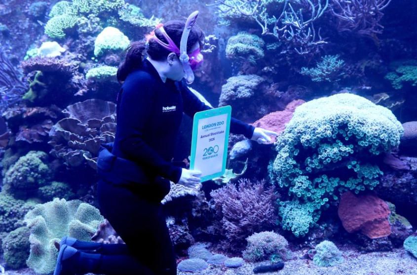 1月6日,在英国伦敦动物园,一名工作人员对珊瑚进行盘点。图片来源:新华网