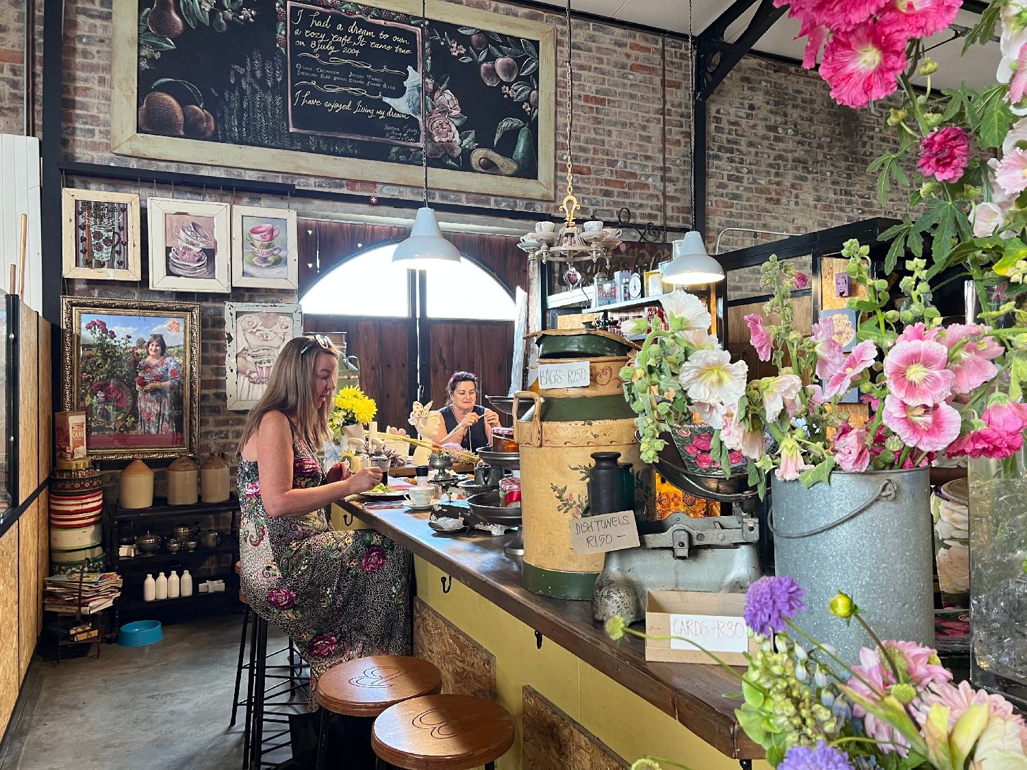 当地时间1月11日,在南非约翰内斯堡一处市集,民众在咖啡馆用餐。周末市集整合餐饮、购物及手作艺术体验等,为民众提供休闲去处,也成为当地小微创业者展示创意的窗口。图片来源:中新社