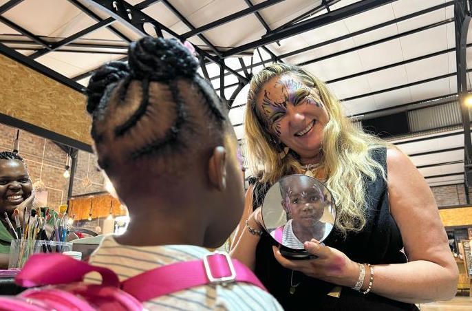 当地时间1月11日,南非儿童在约翰内斯堡的一处周末市集体验人脸彩绘。图片来源:中新社