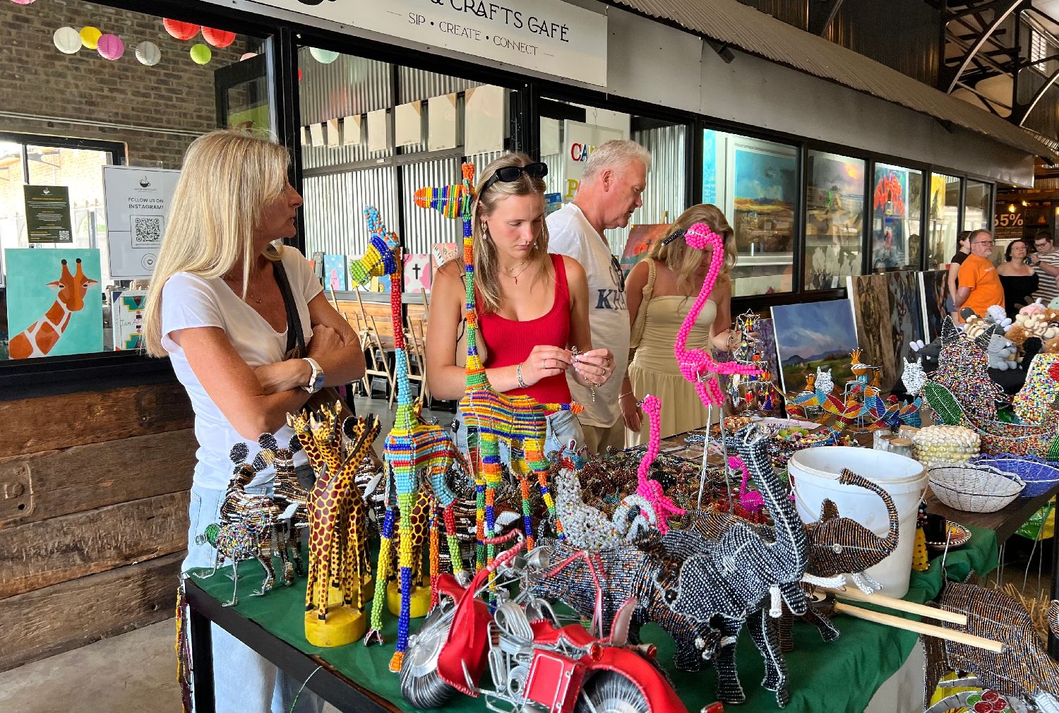 当地时间1月11日,在南非约翰内斯堡一处市集,民众挑选手工艺品。图片来源:中新社