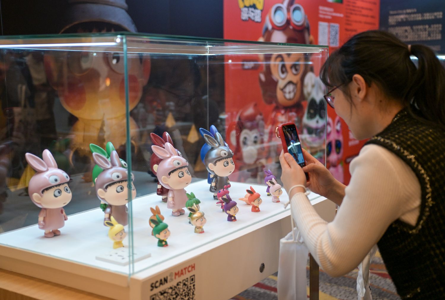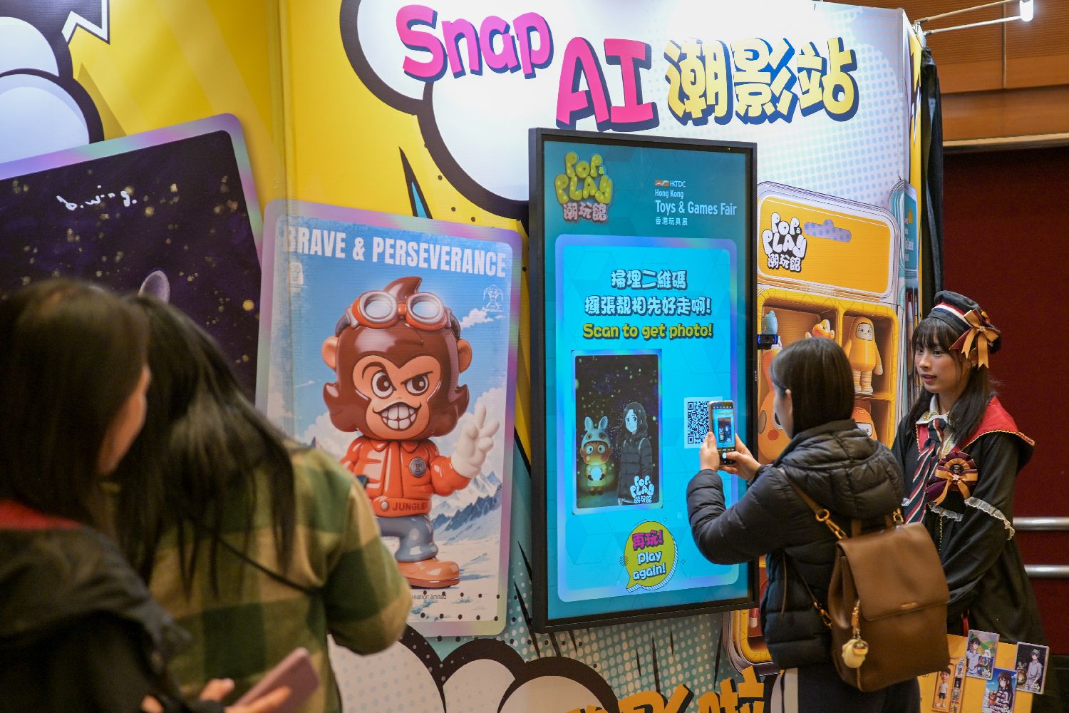1月12日,香港贸易发展局举办的第52届香港玩具展在香港会议展览中心揭幕,玩具展首设“潮玩馆”,展出约150个潮玩IP,吸引买家及公众入场挑选与采购。据悉,同期还举行第17届香港婴儿用品展,以及第24届香港国际文具及学习用品展。三项展览吸引来自37个国家及地区,汇聚超过2600家展商展示全球商品。图为现场人士拍摄由人工智能生成动漫风格的图片。图片来源:中新社