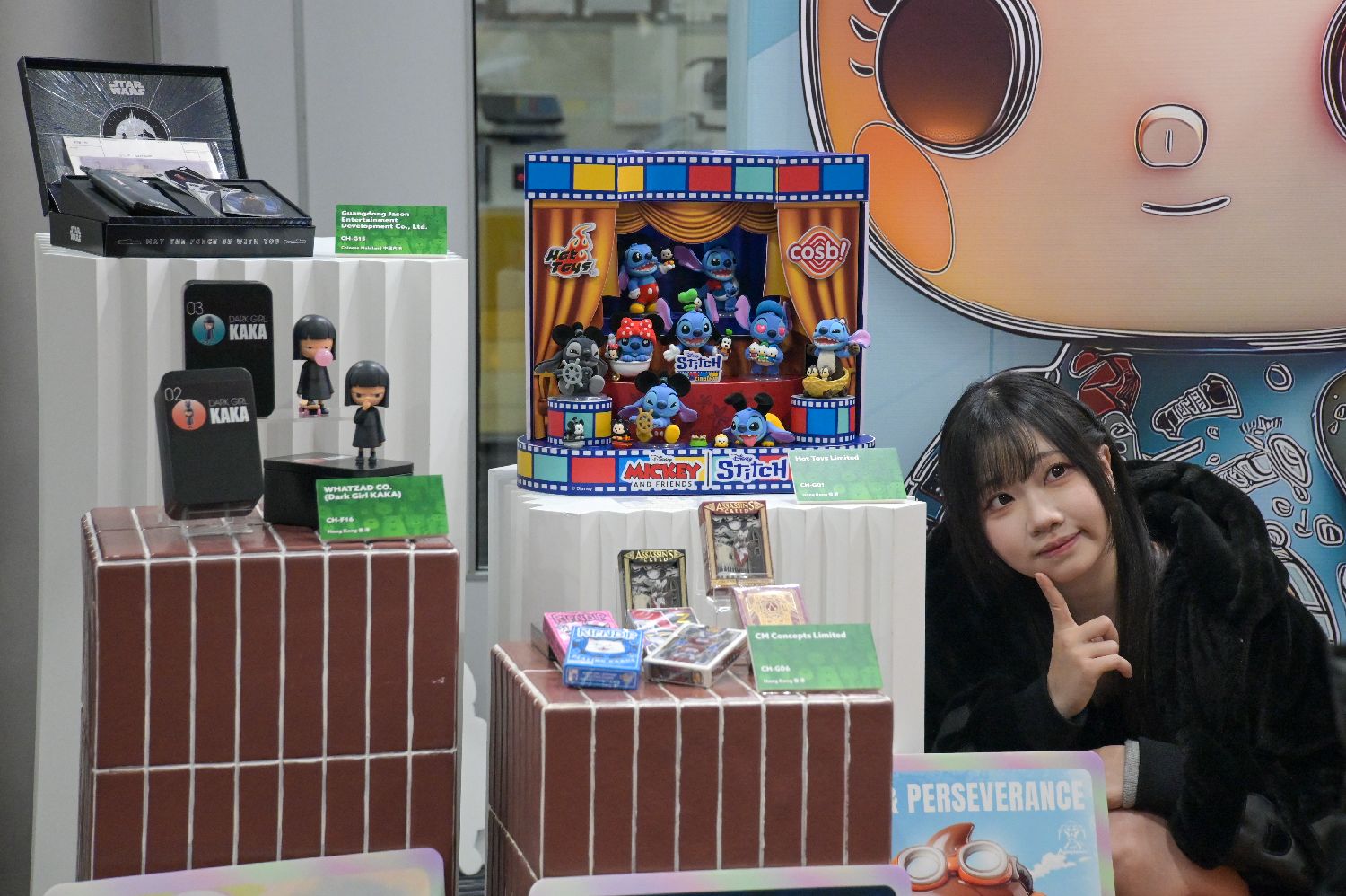 图为一名女士与玩具展的展品合影。图片来源:中新社