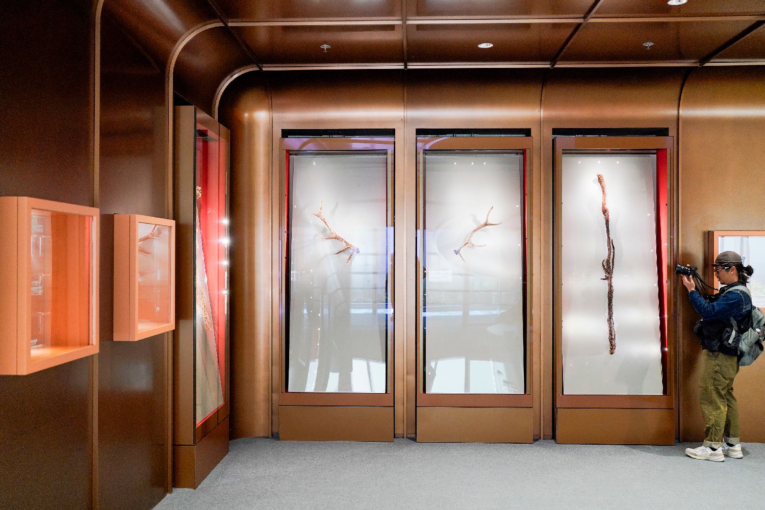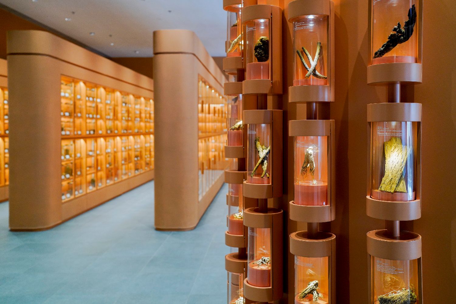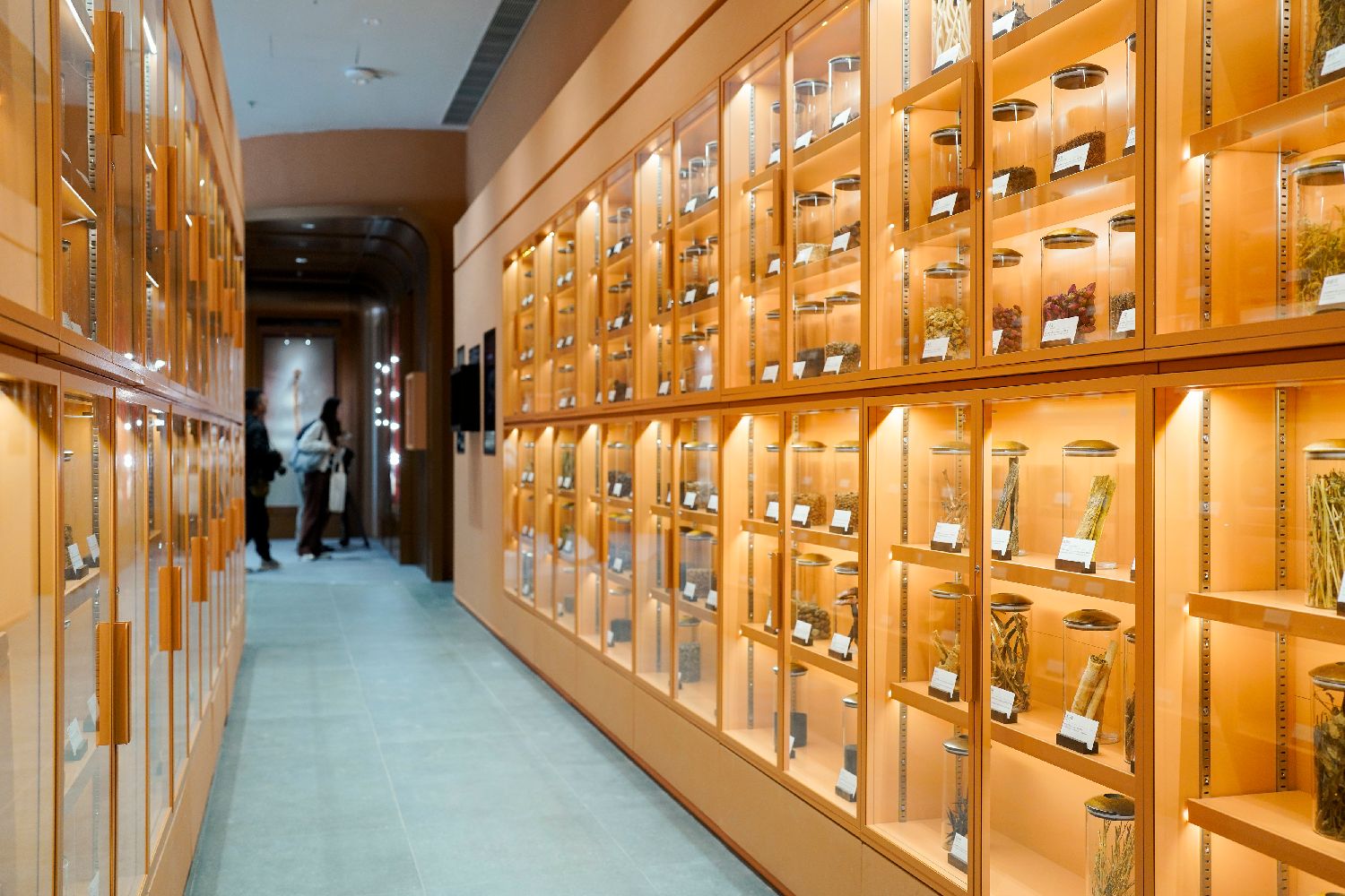 1月15日,香港政府中药检测中心永久大楼已分阶段投入服务,大楼设有7间中药标本馆,展出约3500份标本,将开放参观。大楼同时配备标本实验室及“神农本草园”,供科研及公众参观之用。图为标本馆展出的中药材标本。图片来源:香港中通社