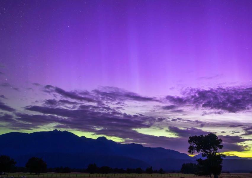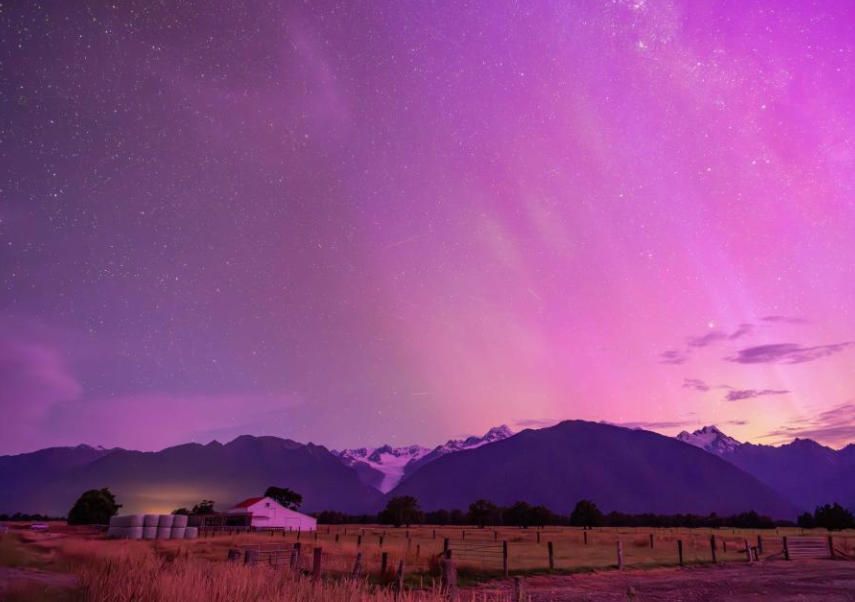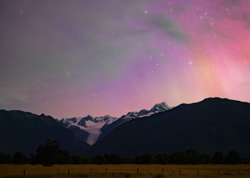 这是1月20日在新西兰南岛福克斯冰川附近拍摄的极光。图片来源:新华网
