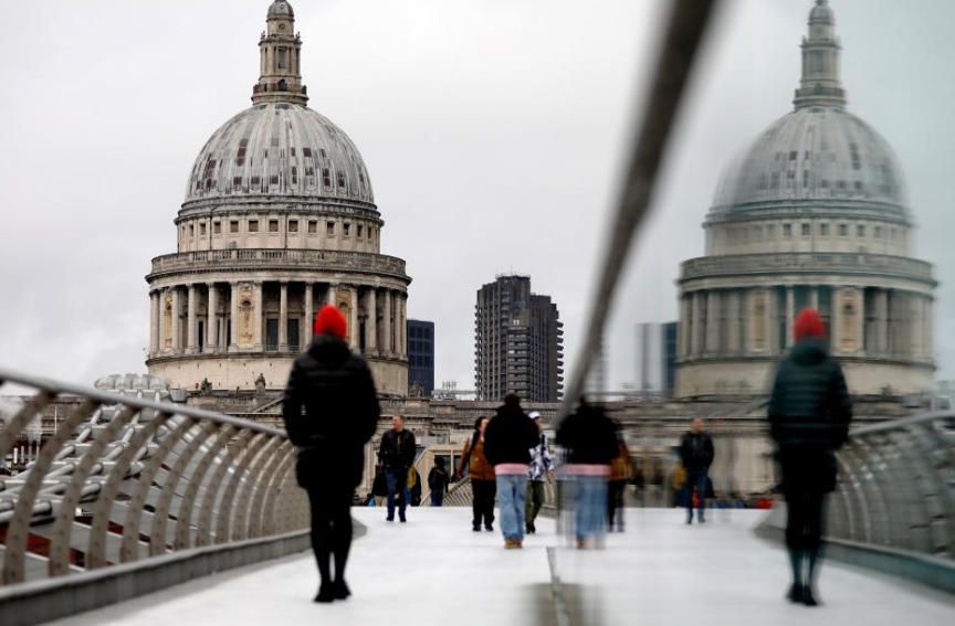 1月27日,一名行人走在英国伦敦圣保罗教堂附近。图片来源:新华网