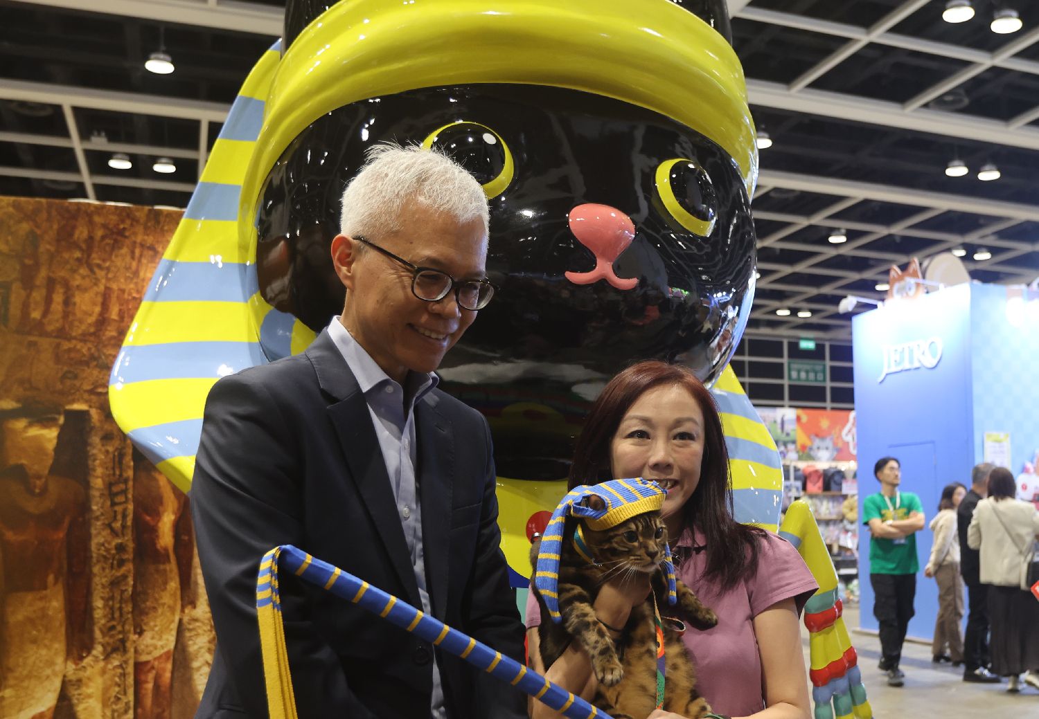 本届宠物节首度联乘香港故宫文化馆,在场内打造“古埃及文化大展—埃及博物馆珍藏”专区,展出高达2.5米的法老猫巨型装置,成为今届打卡热点。图片来源:香港中通社