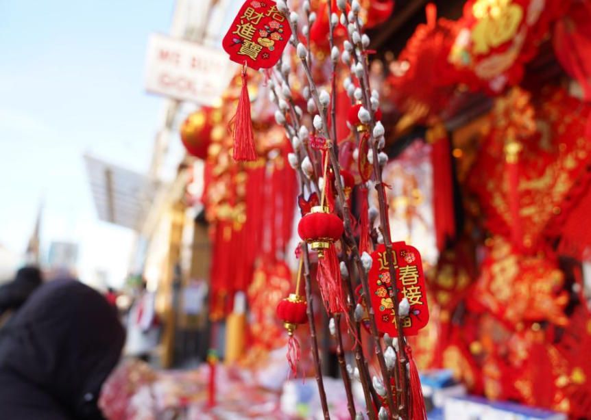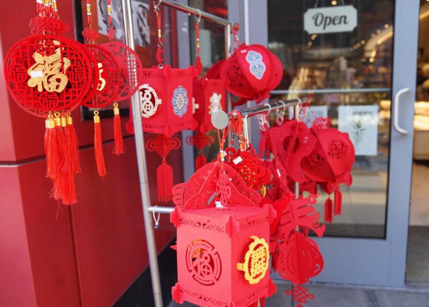 这是2月4日在美国纽约皇后区法拉盛拍摄的春节装饰品。图片来源:新华网