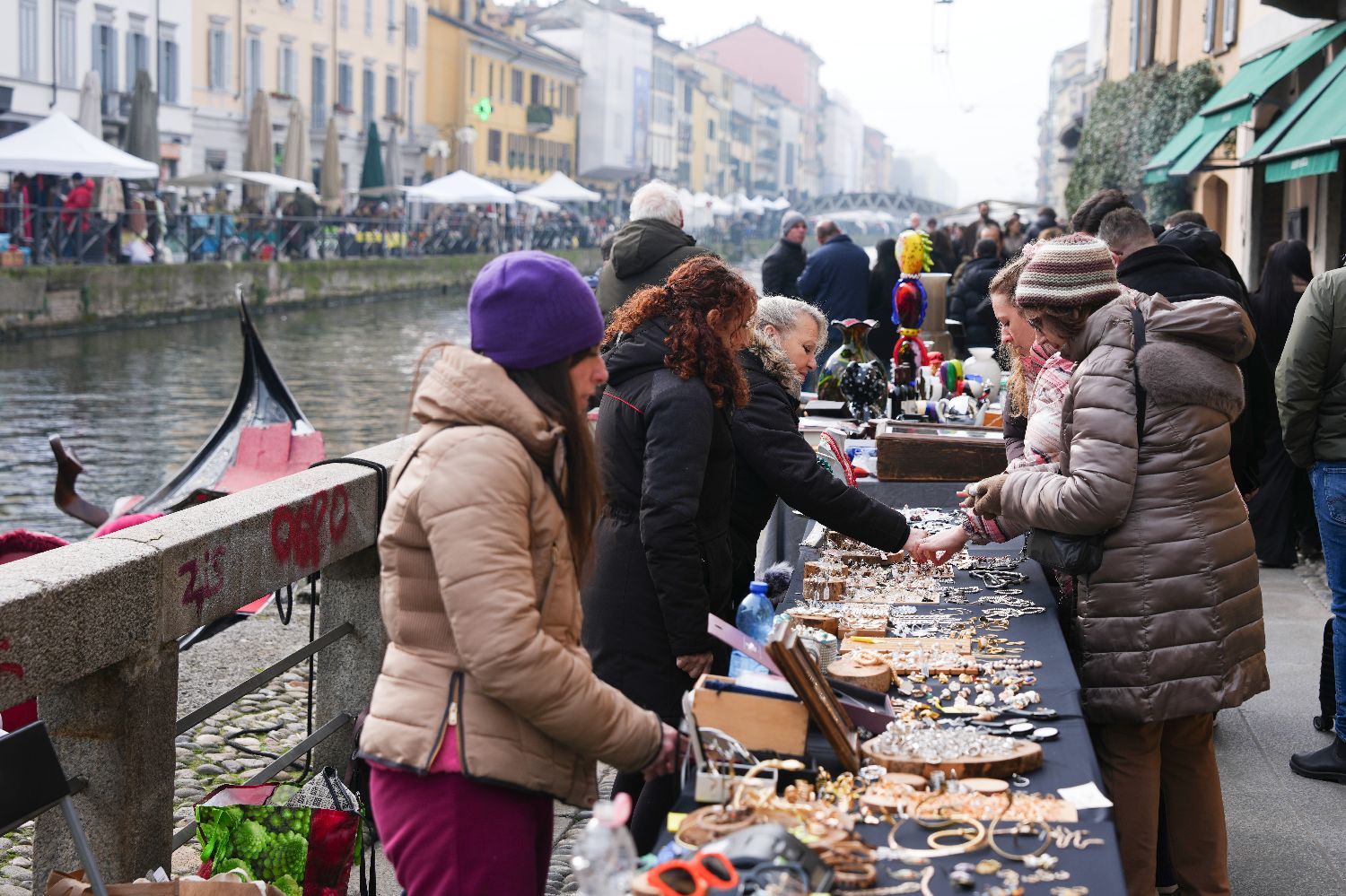 当地时间2月8日,意大利米兰NaviglioGrande运河畔的二手中古市集人气颇旺。图片来源:中新社