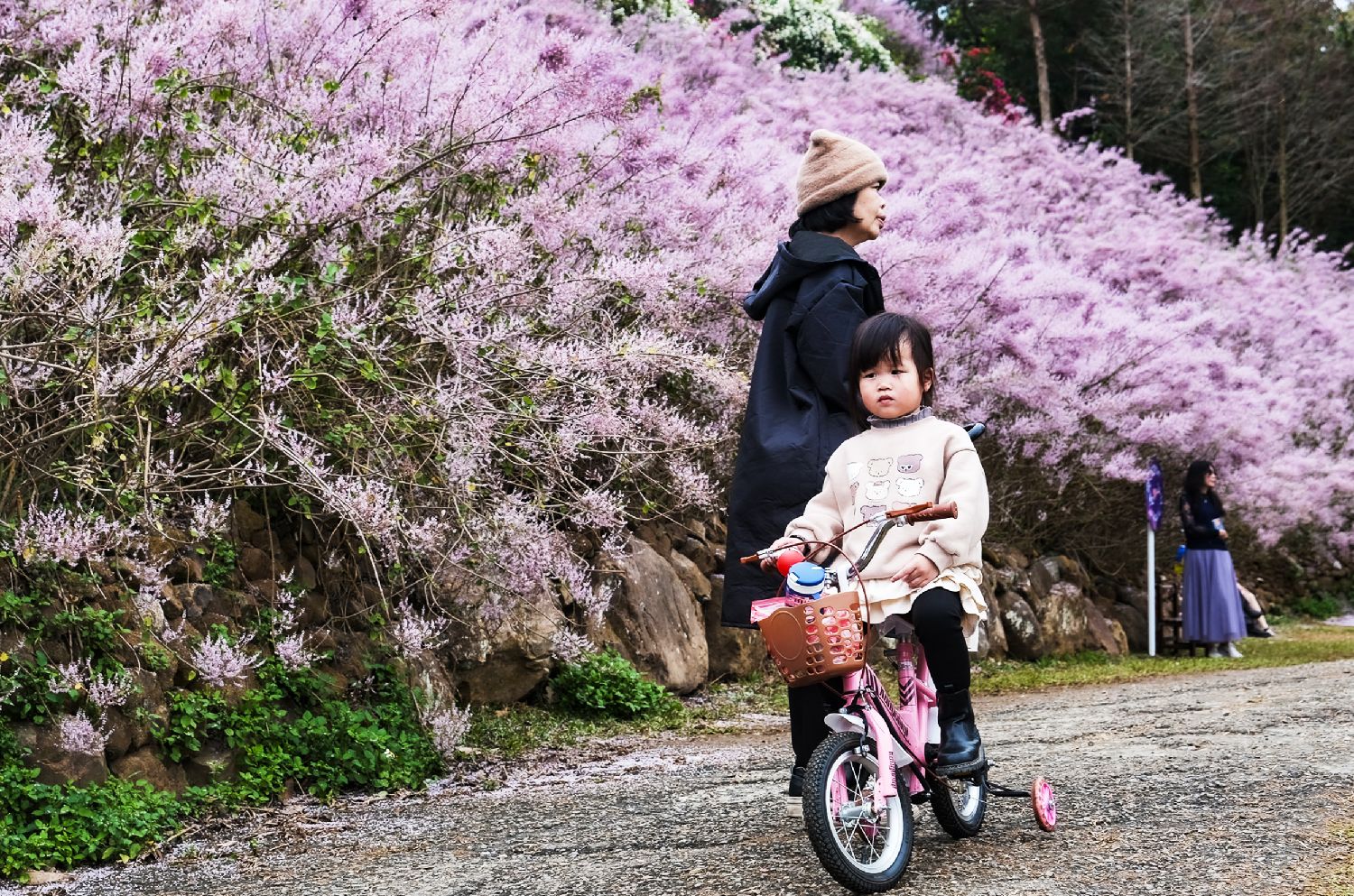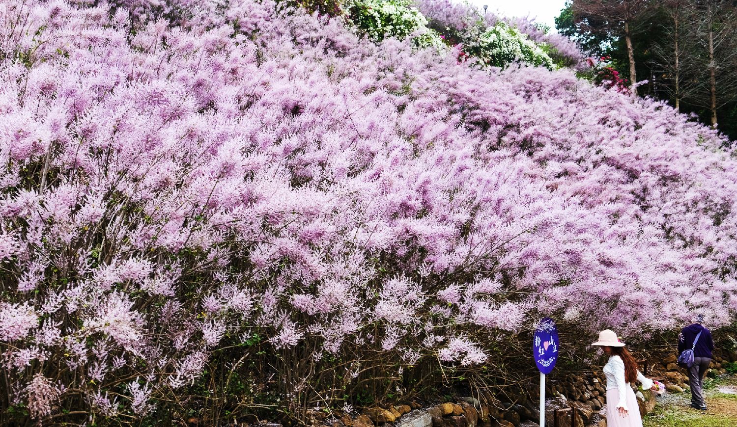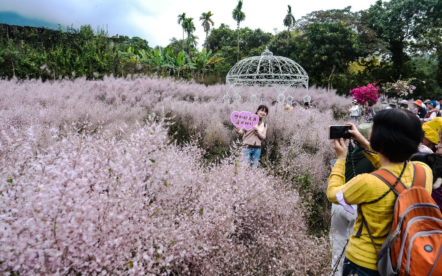 台湾南投县中寮知名的瑰蜜甜心玫瑰园中的麝香木正盛开,山头铺满了一片片粉红色花地毯,带着淡淡的香气,既浪漫又疗愈,吸引民众前往朝圣欣赏。图片来源:香港中通社