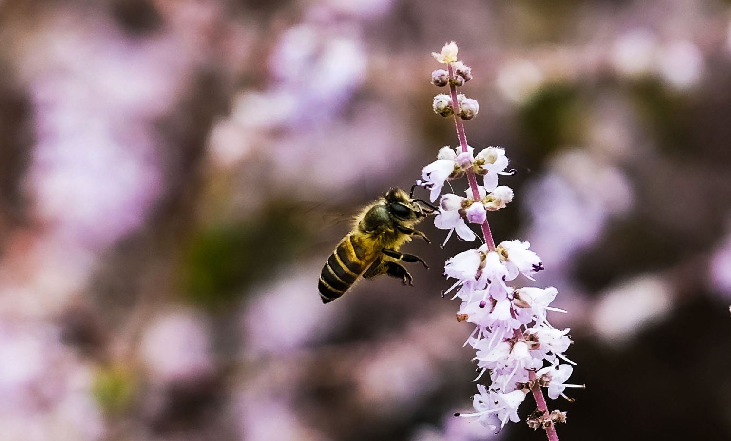 图为瑰蜜甜心玫瑰园中的一只蜜蜂。图片来源:香港中通社