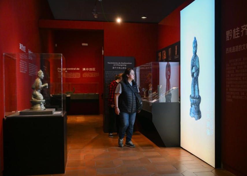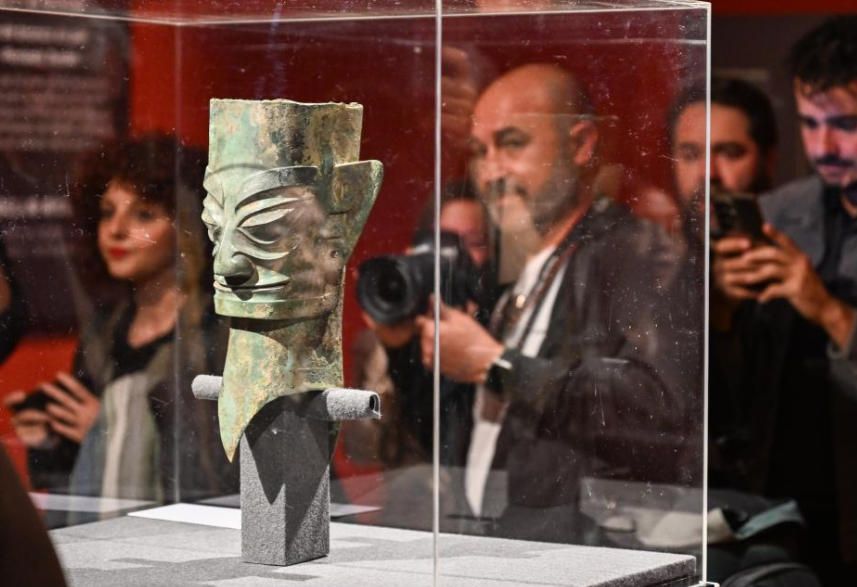 3月17日,在西班牙瓜达拉哈拉博物馆,人们参观中国西南地区青铜文明展。由中国国家文物局与西班牙卡斯蒂利亚—拉曼查自治区政府主办的中国西南地区青铜文明展3月17日在西班牙瓜达拉哈拉博物馆开幕,集中呈现中国古代西南地区多元灿烂的青铜文化和独具特色的社会生活图景。图片来源:新华网