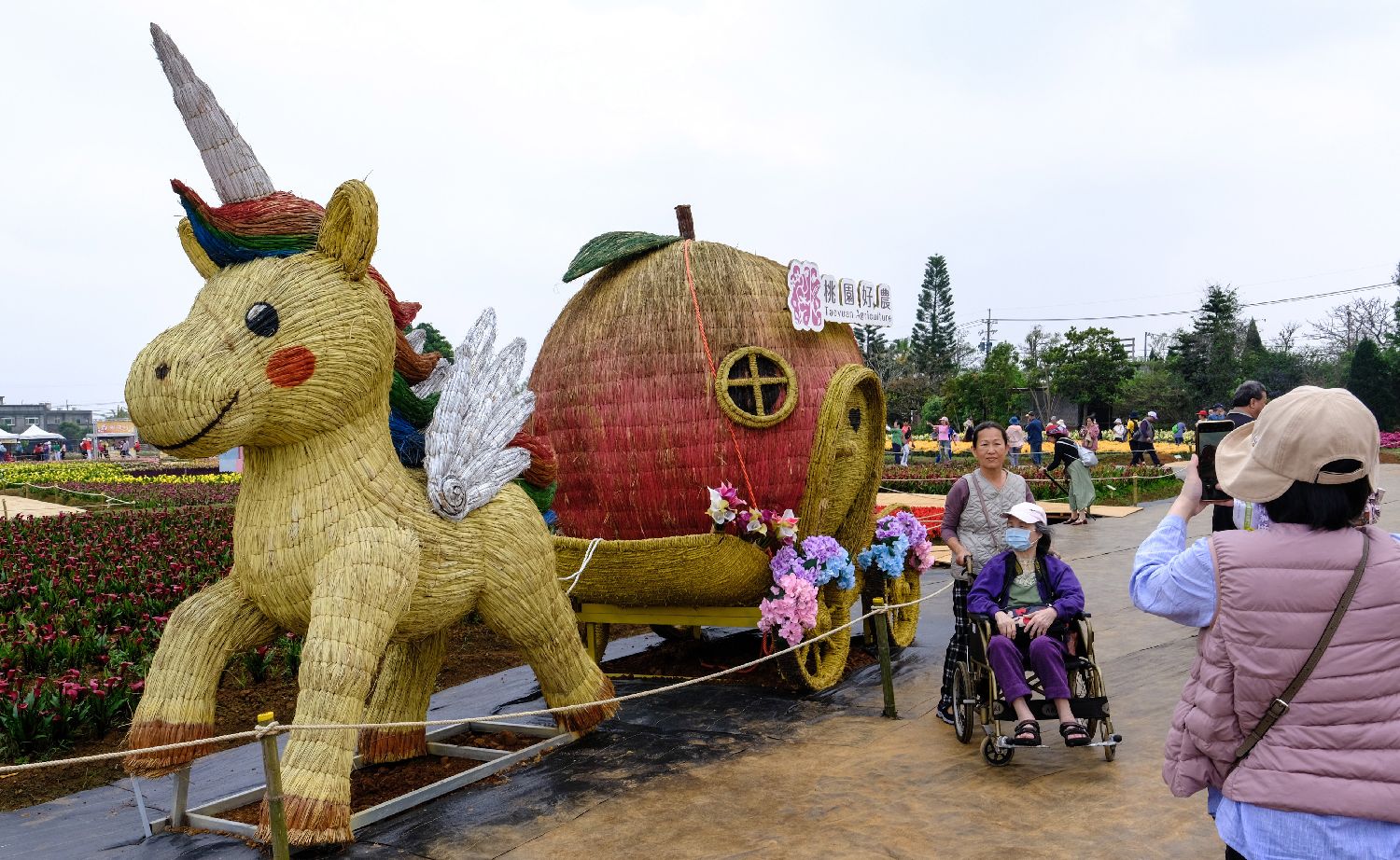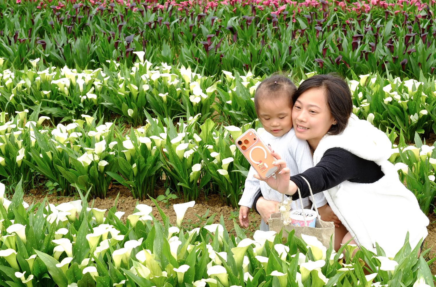 台湾"2026桃园彩色海芋季"以"圆梦奇芋记"为主题,构筑出一场象征城市奇迹的华丽盛宴。今年园区种植约12万株彩色海芋与百合、小苍兰等花卉,再搭配花海装置艺术、假日表演、市集与体验等活动,带给民众最缤纷的春日花海和视觉震撼。图片来源:香港中通社