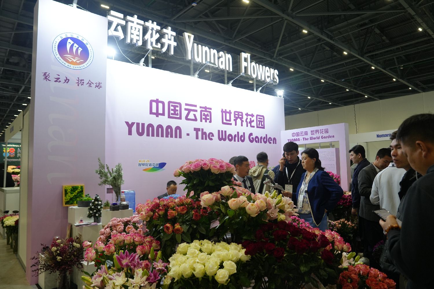 图为中国云南花卉企业组团参展。图片来源:中新社