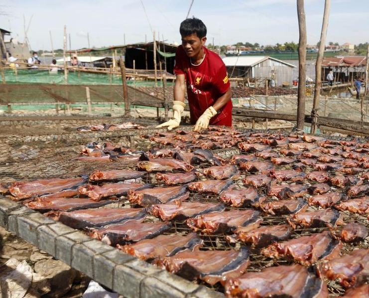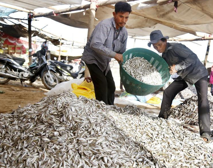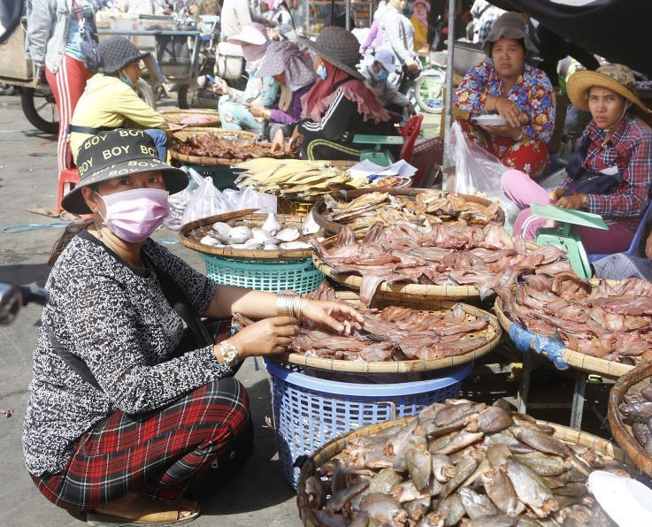 每年12月,洞里萨湖水倒灌入湄公河,用来制作高棉腌食“波罗福”(俗称“臭鱼”)的鱼类会在此时期高度密集,吸引众多渔民前往捕捞,许多民众也会到河边购买各式鱼类。图为12月下旬,柬埔寨金边的一处农贸市场繁忙景象。(图片来源:澳洲网)