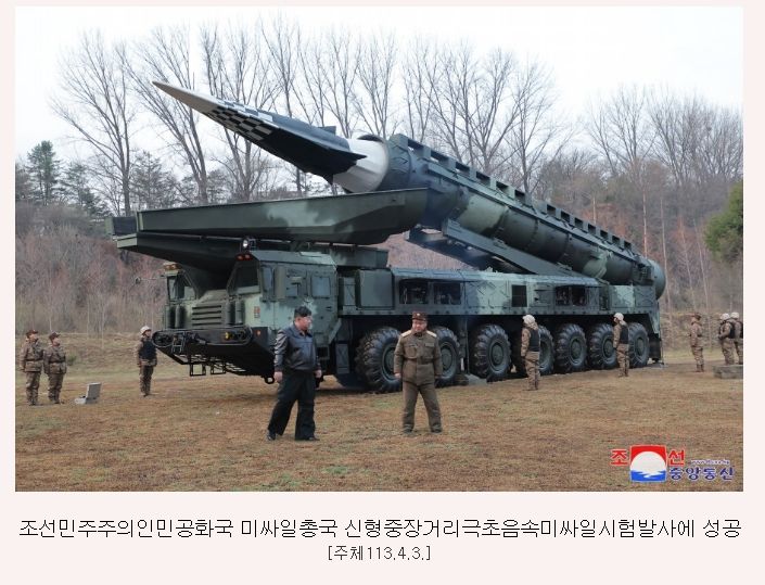 新华社援引朝中社报道,该导弹在平壤市郊某人民军部队训练场向东北方向发射。从导弹分离的高超音速滑翔飞行战斗部沿预定飞行轨道飞行,第一次顶点高度达101.1公里,第二次顶点高度达72.3公里。战斗部准确落在射程1000公里界限的朝鲜半岛东部水域。