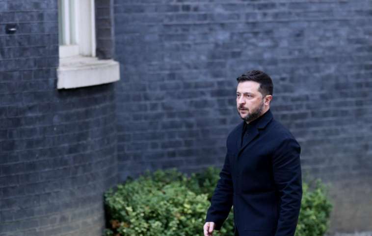 图为10月24日,在英国伦敦,乌克兰总统泽连斯基走向唐宁街10号首相府。(图/新华社)