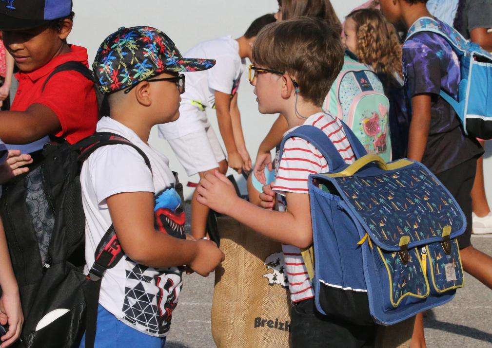 2022年9月1日,在法国南部小城昂蒂布,学生们抵达学校。(图/新华社)