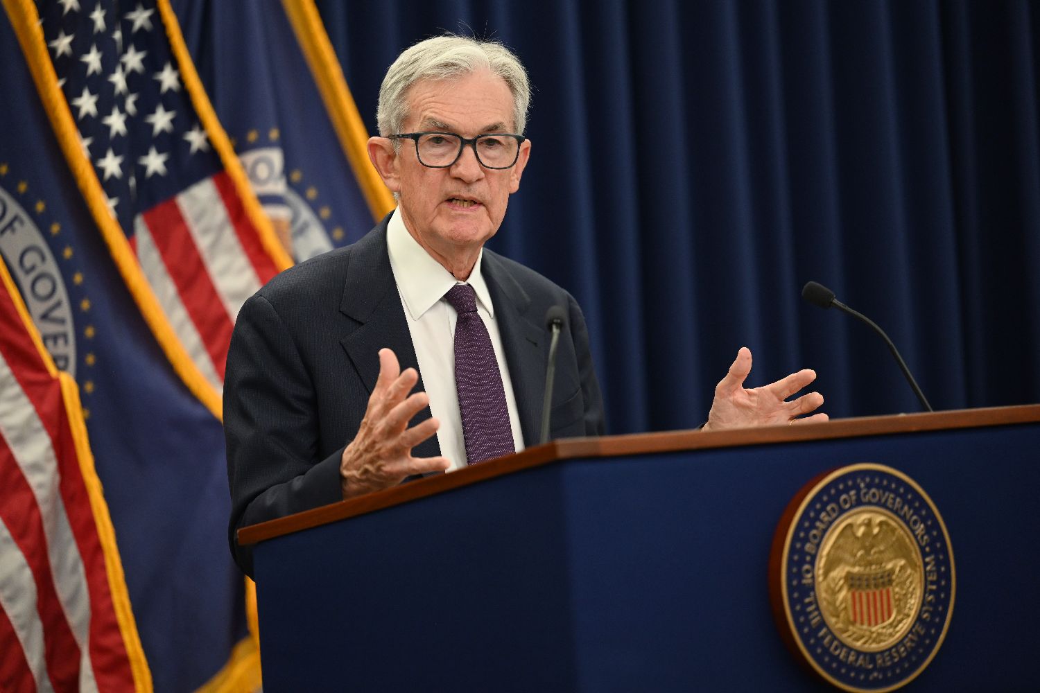 当地时间1月28日,华盛顿,美国联邦储备委员会结束为期两天的货币政策会议,宣布将联邦基金利率目标区间维持在3.5%至3.75%之间不变。图为美联储主席鲍威尔当天出席记者会。(图/中新社)