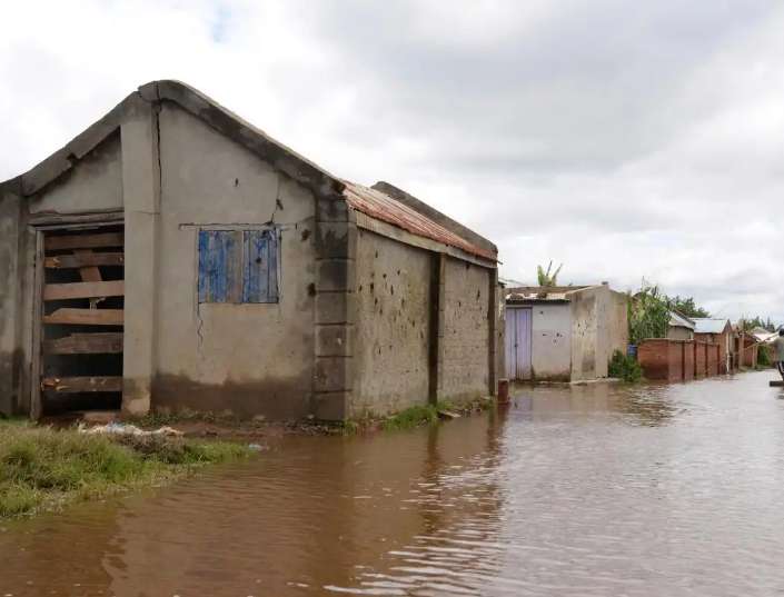 图为2月12日在马达加斯加首都塔那那利佛拍摄的被淹的房屋和道路。(图/新华社)