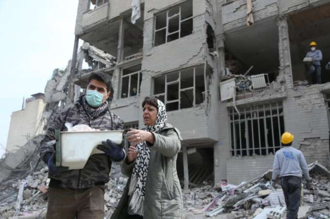 图为3月12日,在伊朗首都德黑兰,市民站在建筑废墟前。(图/新华社)