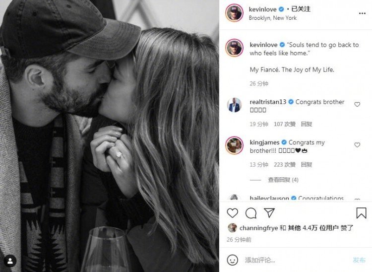 NBA骑士全明星前锋乐福2月1日更新社交媒体,宣布自己和恋爱多年的模特女友凯特·伯克正式订婚。乐福晒出了一张两人亲吻的照片,并写道:“灵魂倾向于回到让你感觉到像家的人,我的未婚妻,我一生的喜悦。”