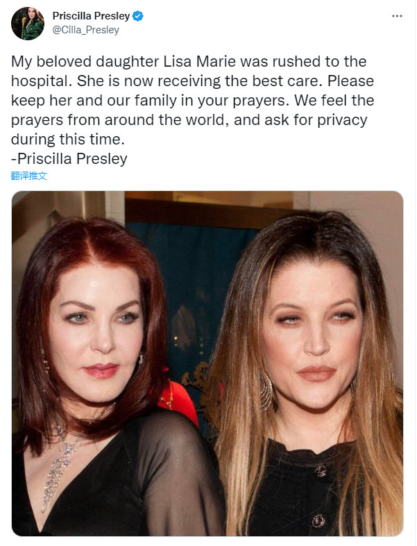 “猫王”独女因心脏骤停去世。(图/PriscillaPresleyTwitter)