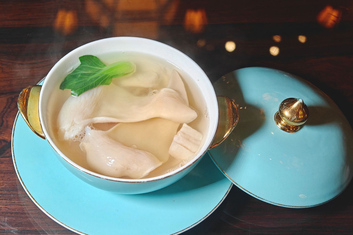 在弥漫着高汤香气的厨房内,年近六旬的陈辉手持长勺,眼神专注地盯着锅中澄澈的鸡汤。他说,这道汤品的精髓的在于“三茸鸡汤”的慢炖与漳港海蚌的鲜醇,需选用两年以上老母鸡、牛里脊、猪里脊,按1:1:1比例剁茸制成绒团,放入鸡汤中慢煮吸附杂质,再经多层过滤去油,最终汤色清亮可鉴,即为“鼎汤”。