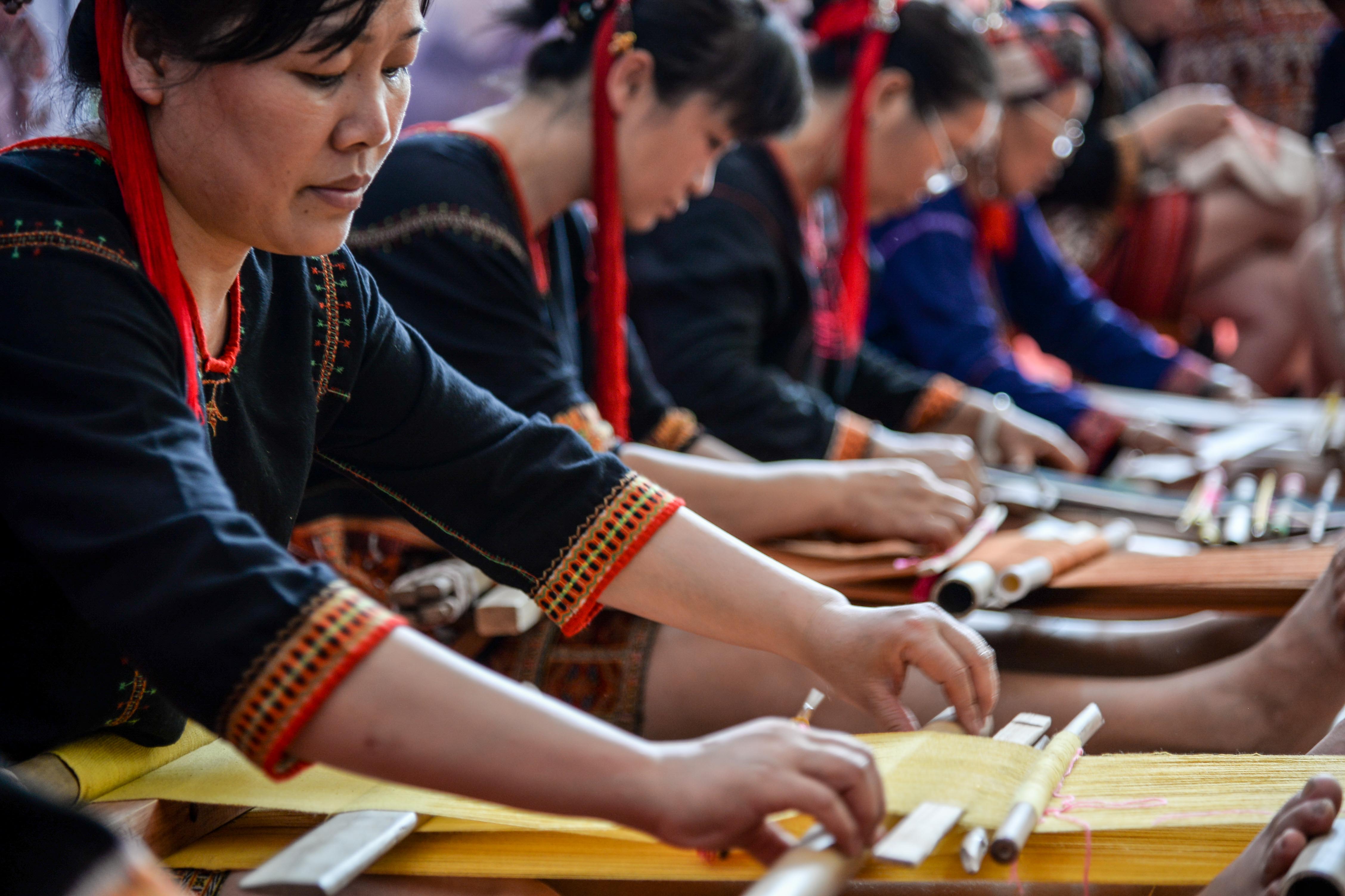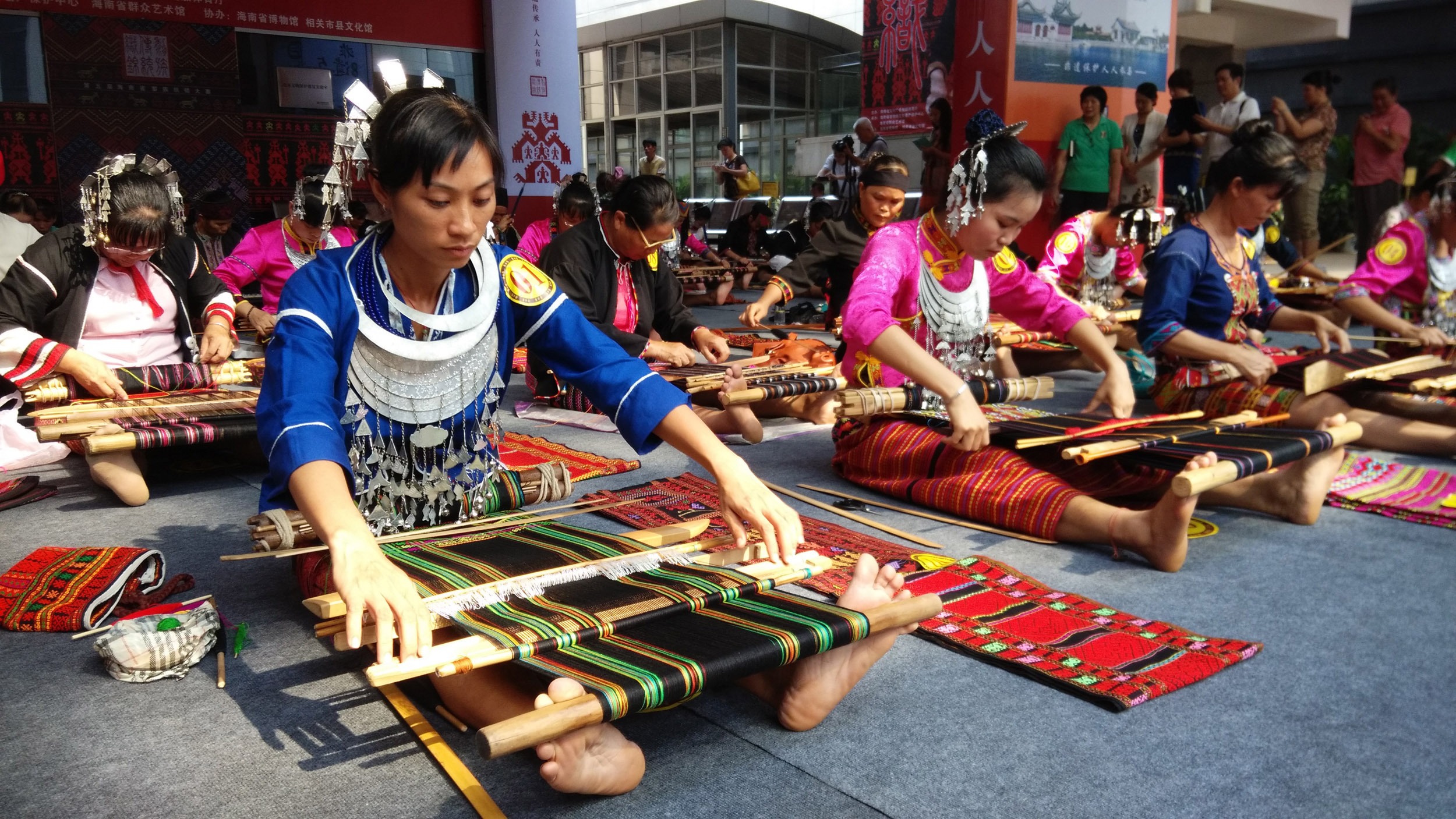 图为艺人展示黎族传统纺染织绣技艺。(图/中新网)