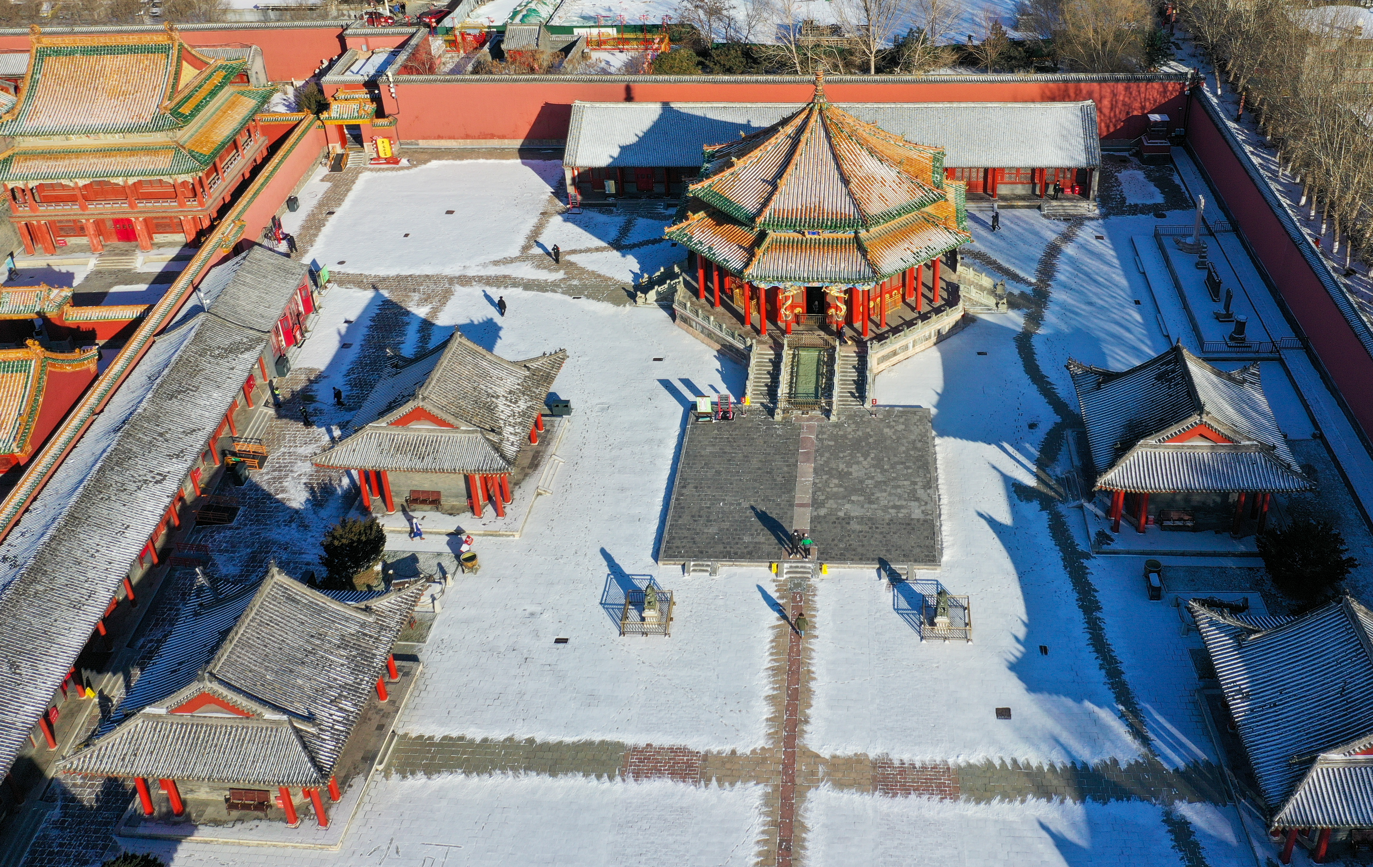 2022年12月3日,航拍雪后的沈阳故宫,银装素裹美如画。