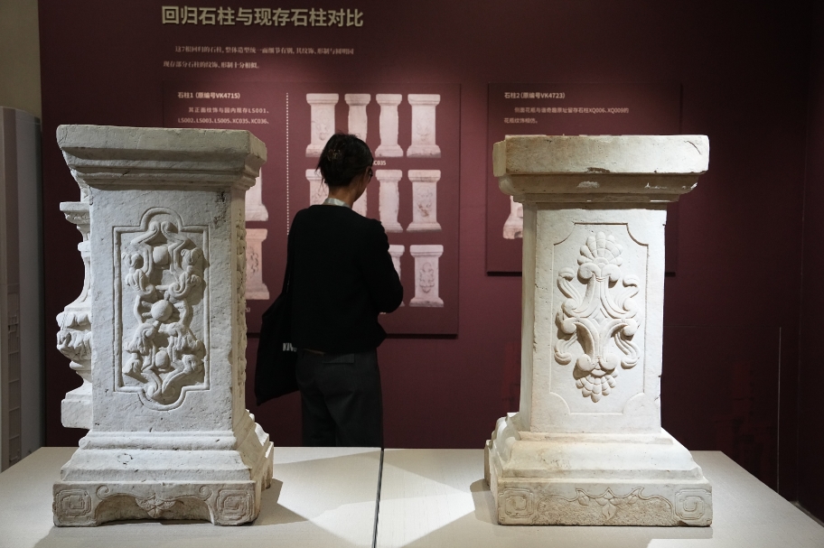 13日上午,“圆明园石柱回归展”开幕式在北京市海淀区圆明园遗址公园正觉寺举行。本次展览集中展示7件圆明园流失的石柱文物,这是继马首铜像之后又一批回归圆明园的流失海外文物。