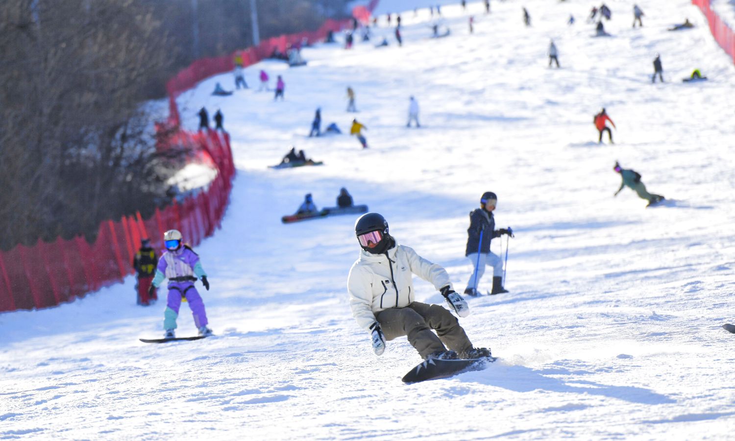 图为11月22日,第31届吉林雾凇冰雪节开幕,滑雪爱好者在滑雪场畅滑。(图/中新社)