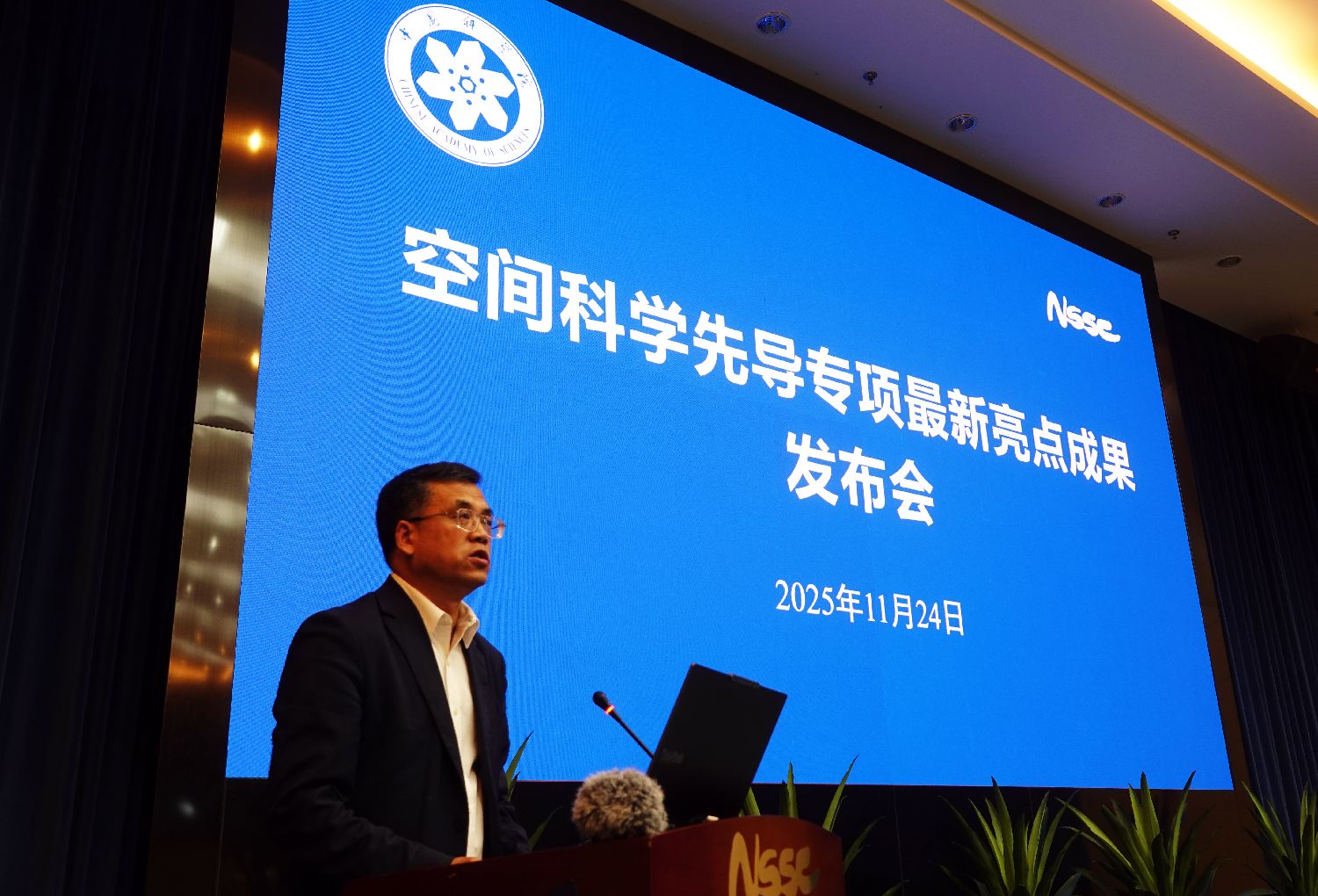 图为11月24日,北京,中国科学院国家空间科学中心举行空间科学先导专项最新亮点成果发布会,王赤院士介绍专项整体进展和未来展望。(图/中新社)