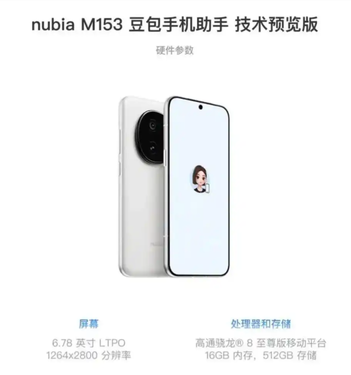 图为首款搭载豆包手机助手的手机产品努比亚M153。(图/香港凤凰网)