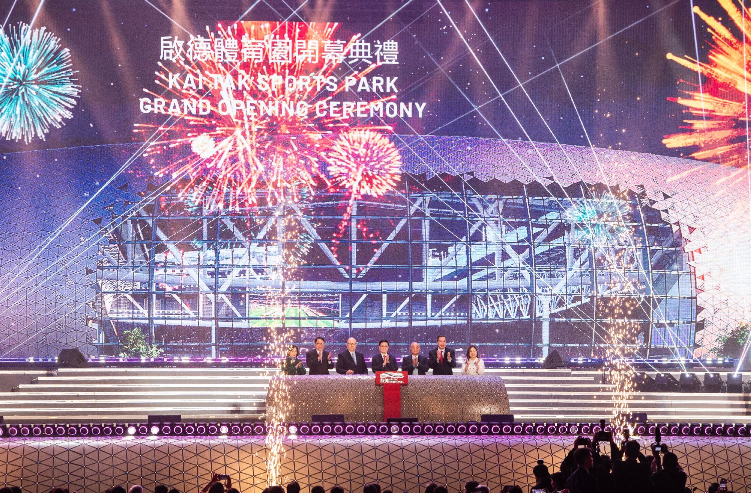 图为当地时间3月1日晚,香港地标性最大规模体育娱乐文化设施——启德体育园盛大开幕。(图/中新社)