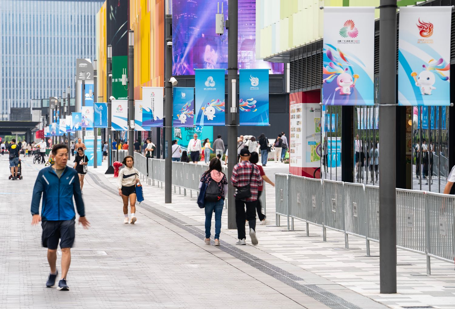 图为11月1日,香港新晋地标启德体育园的体育大道沿途遍布第十五届全国运动会(简称“十五运会”)装饰宣传元素。(图/中新社)