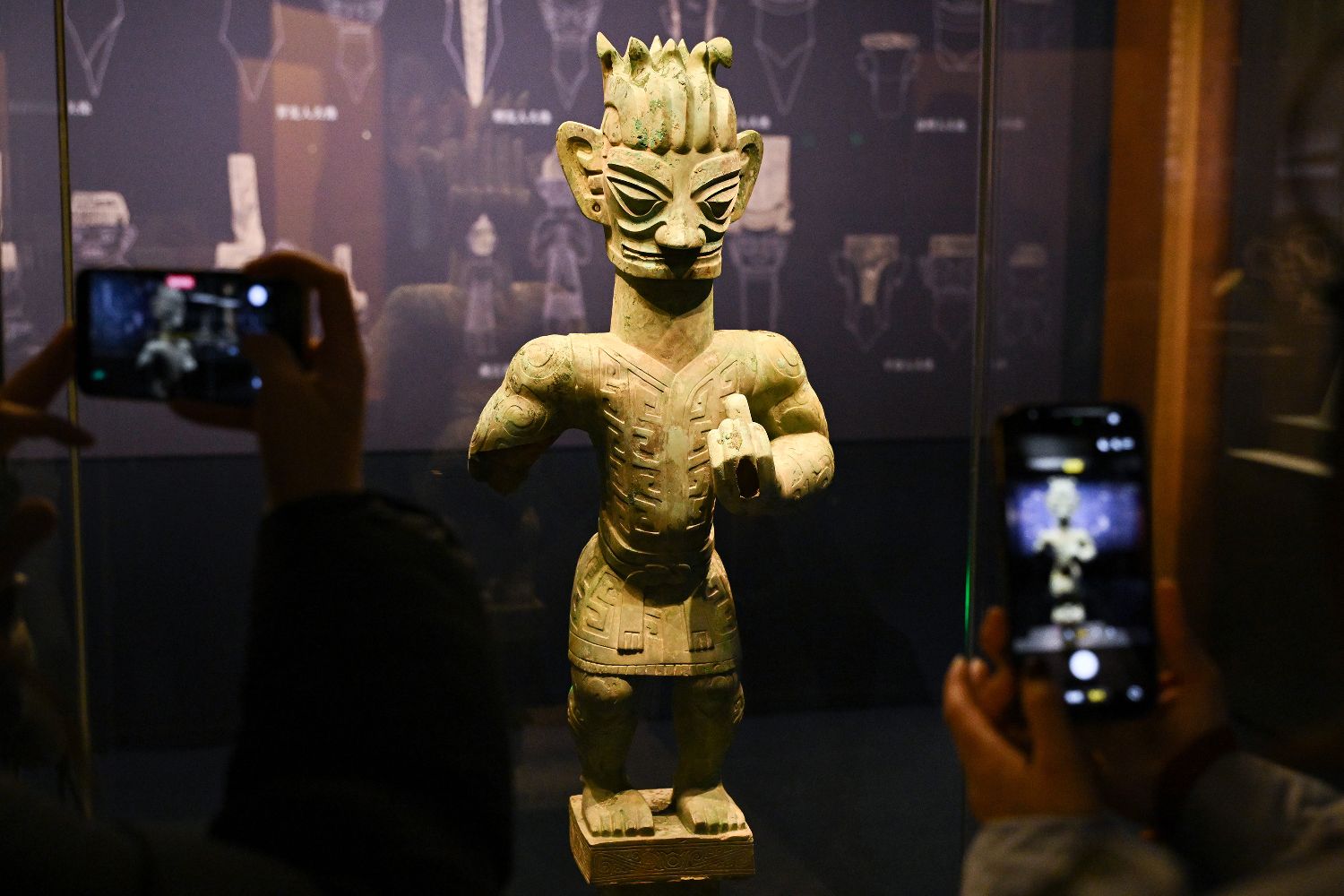 展览还呈现了一次时隔40年的聚首——三星堆博物馆藏和中国国家博物馆藏的戴冠纵目面具并列展出,这是自1986年三星堆祭祀坑发掘以来,这两件标志性青铜面具的首次同台亮相。