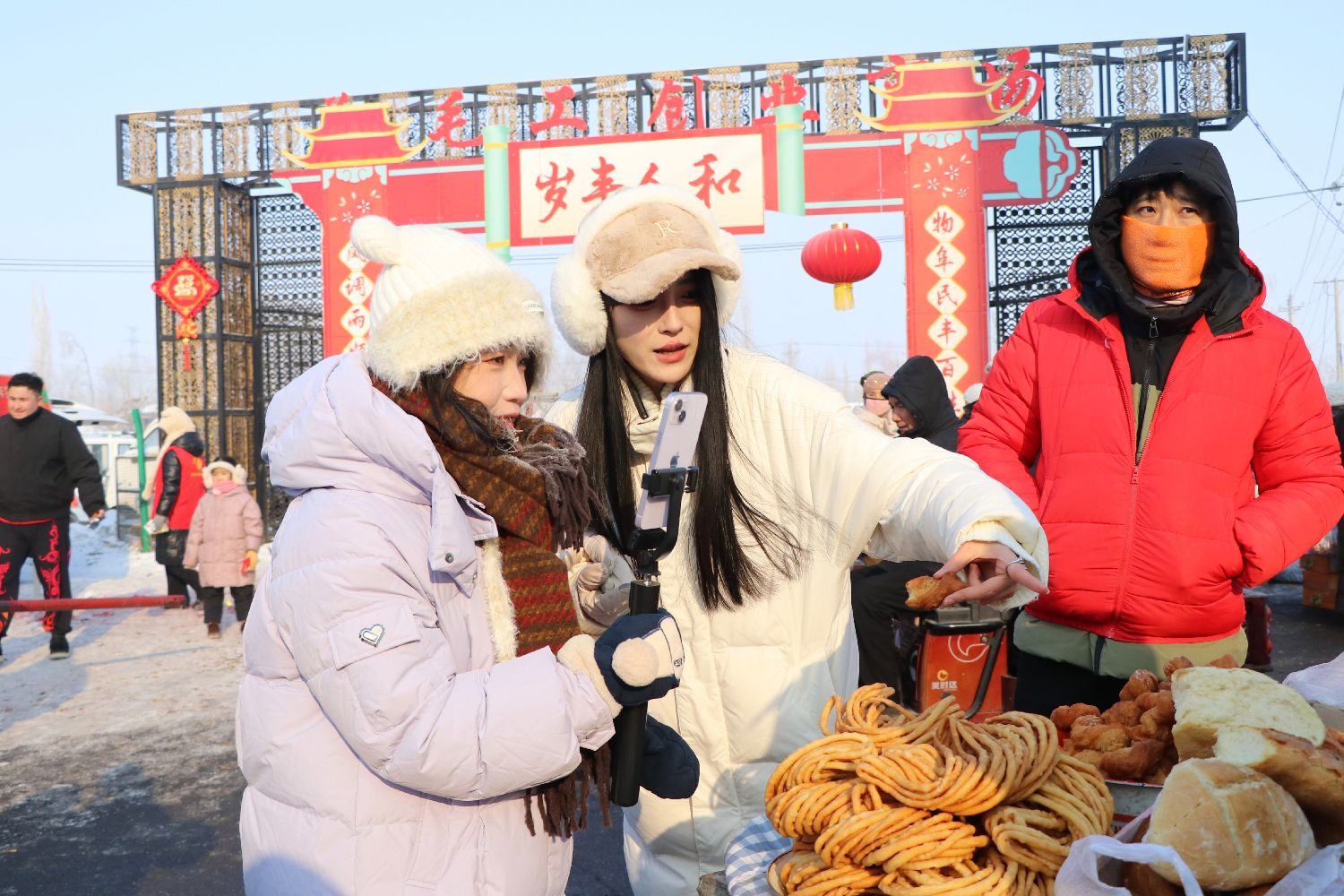 本网讯,羊毛工镇2026年新春年货节19日启动,据该镇镇长沈建梅介绍,年货节同步推出“线上乡村集市+”新模式,鼓励大家直播带货,带动村民实现家门口创业增收。现场有不少摊主打开手机直播,邀请各地网友线上赶集。