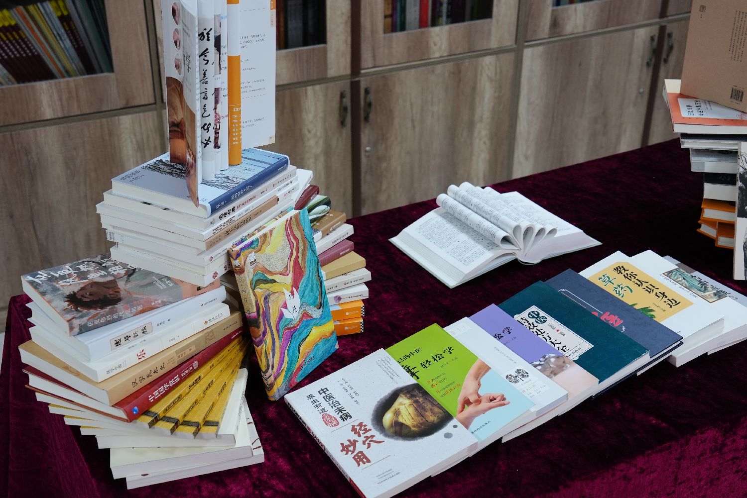 近日,塔吉克斯坦中文图书馆在塔吉克斯坦民族大学孔子学院开馆。图为开馆当日,现场展示的馆藏书籍。(图/中新社)