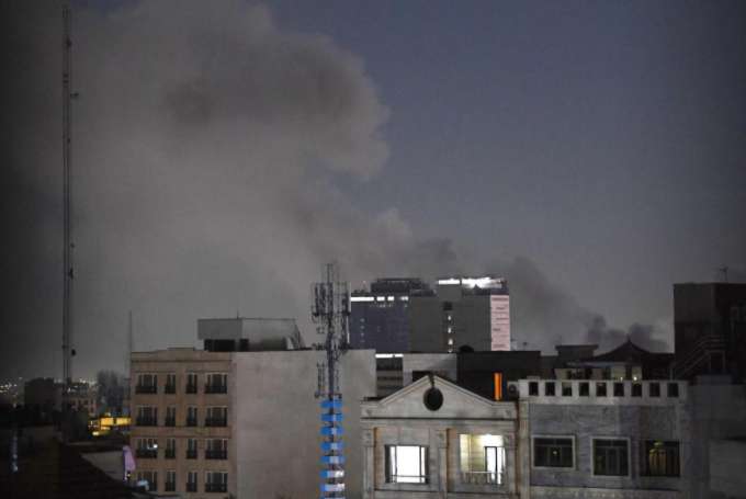 图为当地时间3月1日晚在伊朗首都德黑兰市区拍摄的浓烟。(图/新华社)
