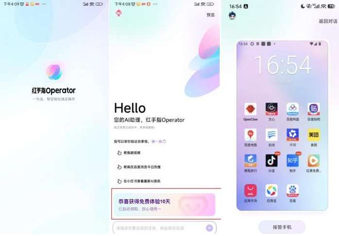据了解,红手指Operator由百度智能云团队打造。用户安装注册红手指Operator后,即可直接指挥这个百度版手机“龙虾”执行任务,无需更换设备,也无需本地安装复杂环境,iOS端预计3月内上线。