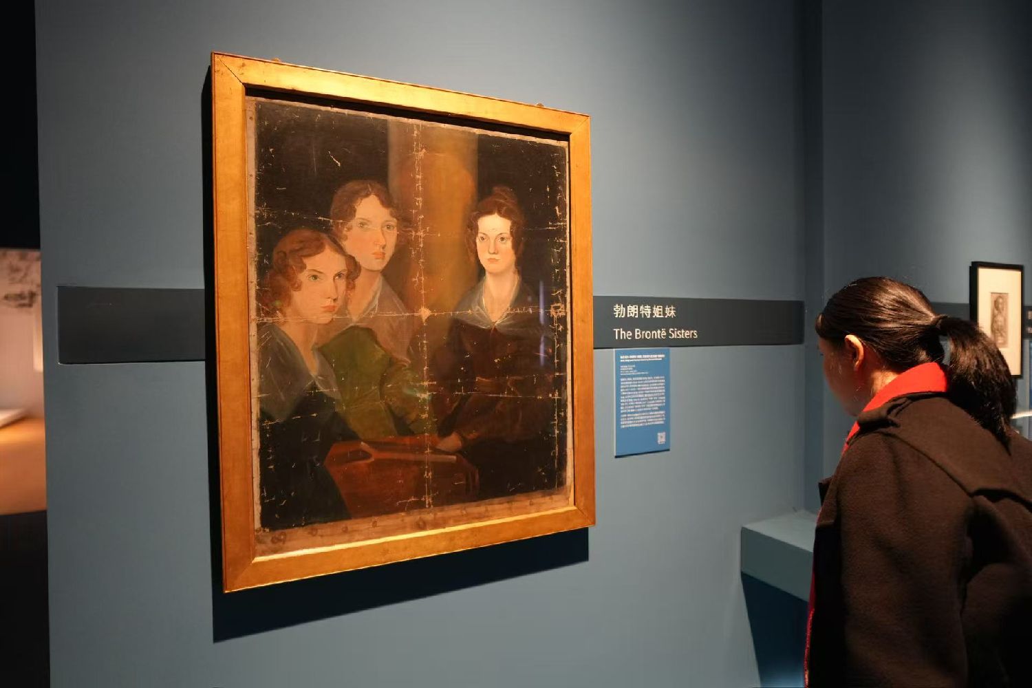 图为3月17日,勃朗特三姐妹唯一的三人同框画像在上海博物馆东馆展出。(图/中新社)