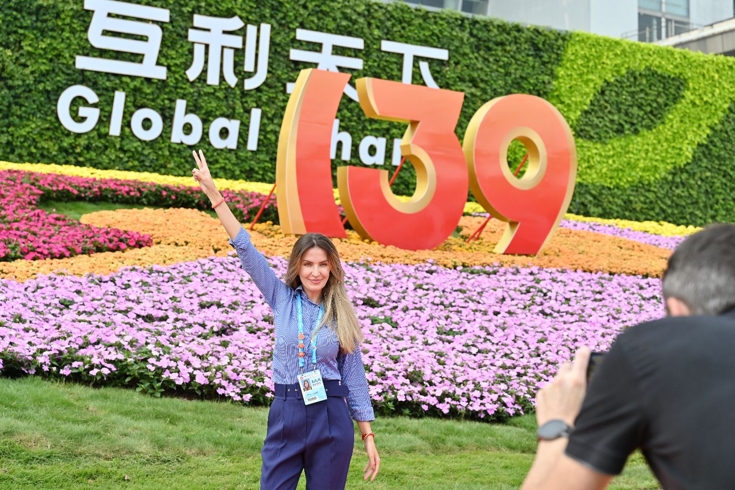 图为境外采购商在广交会展馆拍照。(图/中新社)