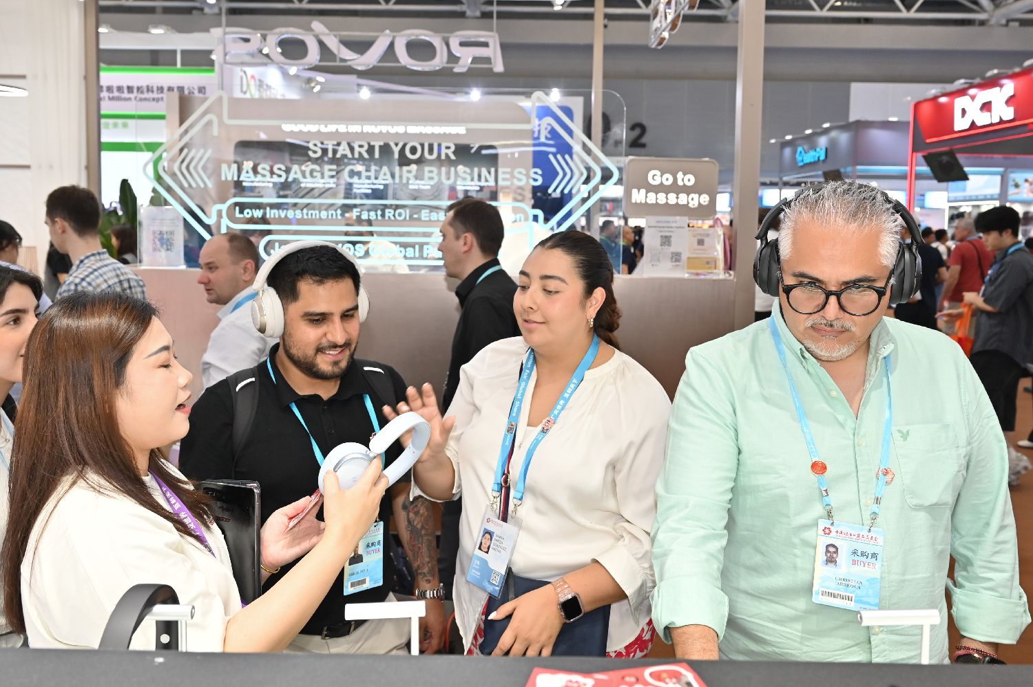 图为智能穿戴专区的耳机吸引境外采购商体验。(图/中新社)