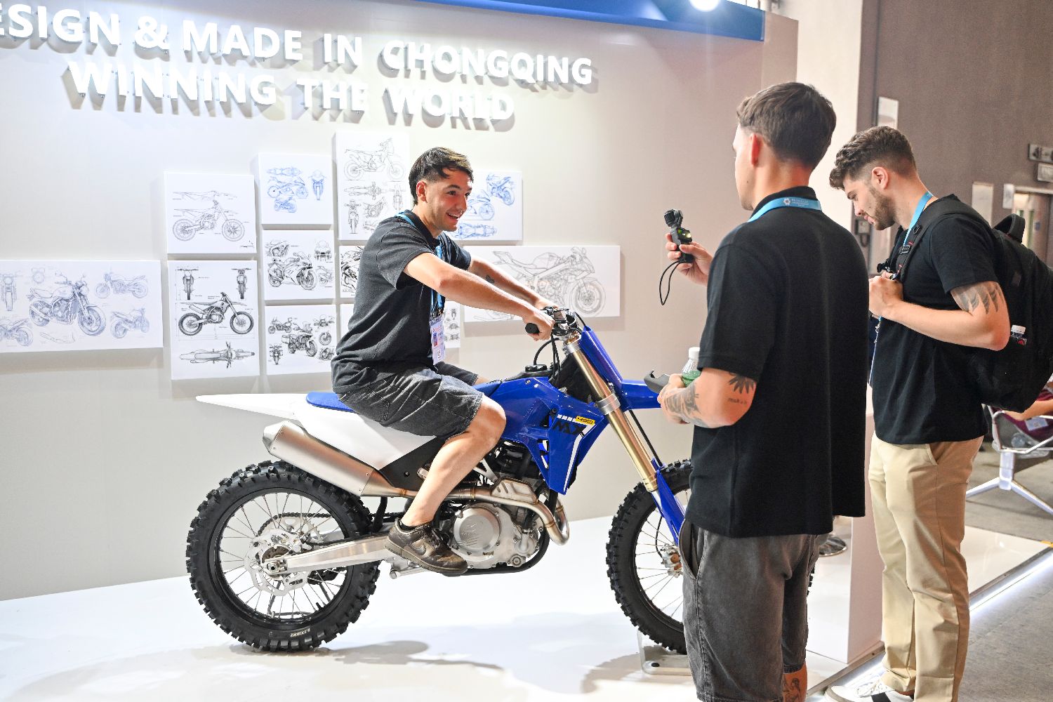 张雪机车在本届广交会展出820RR、500RR等车型,吸引境外采购商关注。图为境外采购商体验张雪机车MX450车型。(图/中新社)