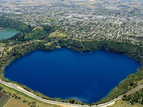 不知不觉中,您已经越过了维多利亚州,进入到南澳区域。最先迎接您的是美丽的蓝湖。蓝湖(The Blue Lake)位于南澳大利亚州的石灰岩海岸(Limestone Coast)的小镇芒特甘比尔(Mount Gambier),是芒特甘比尔最著名的景点。小镇建于死火山遗址上,四周环绕着四个古老的火山湖,其中的两个已经在过去的三四十年间逐渐干涸,而蓝湖是现存的两个火山湖之一。每年的十一月初,随着夏季的来临原本灰蓝色的湖水几乎一夜之间就神秘地变成鲜艳亮丽的钴蓝色,故而称为蓝湖。这样的色彩将一直持续到二月底。三月过后,它又重新变回那种独特的暗蓝色,直至第二年的十一月,然后周而复始。蓝湖水质清澈透明,是当地人的主要饮用水来源。科学家认为,夏季温度较高,使得湖水表面的碳酸钙从水中分离,形成一颗颗极小的微晶,在阳光散射下,拥有饱满华丽的蓝色。从高处俯瞰,蓝湖像极了一颗闪闪发光的巨大蓝宝石,璀璨迷人。蓝湖就像一颗心形的蓝宝石,建议您献给同行的伴侣,共享旅途的幸福和快乐。