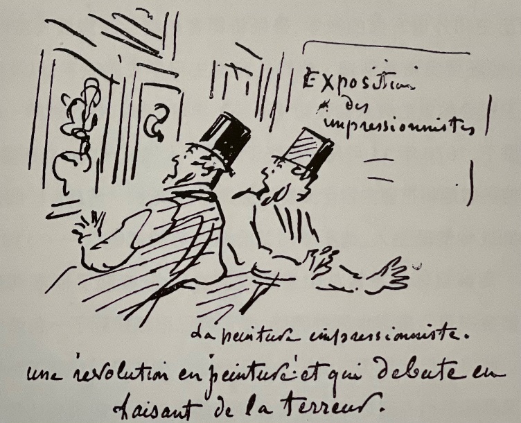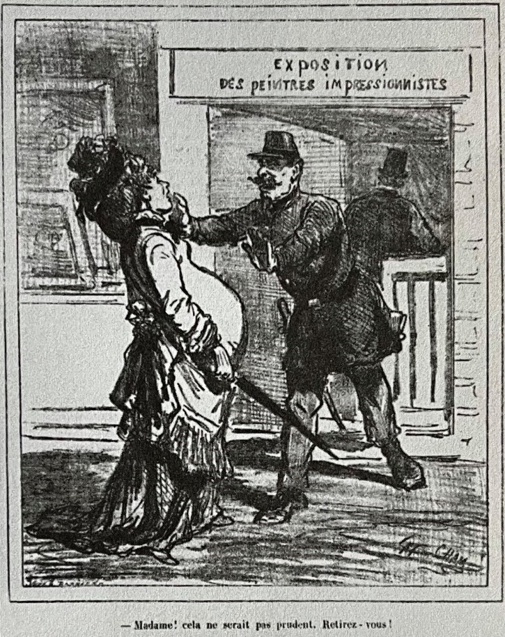 19世纪70年代的印象派画展为法国的新闻媒体提供了一个不可多得的嘲笑现代绘画艺术的土壤,而且从来不缺酿造笑料的来源,另外,法国记者和评论家的尖刻和幽默在艺术界也享有盛名。法国漫画家